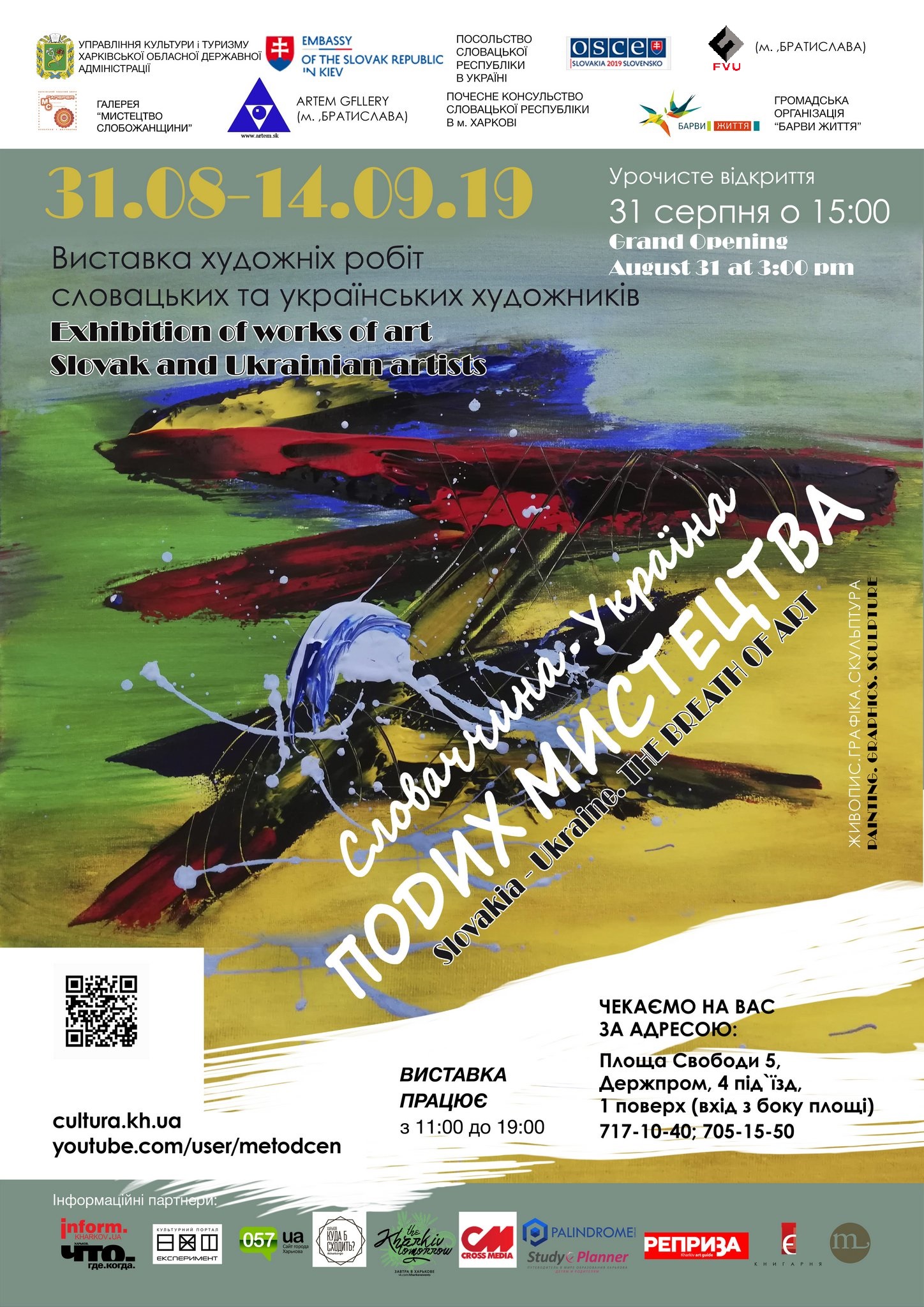 Verrnisáž výstavy Slovenských a Ukrajinských autorov sa uskutoční 31.8.2019 o 15:00 v galérii na Námestí slobody 5, Charkov.
